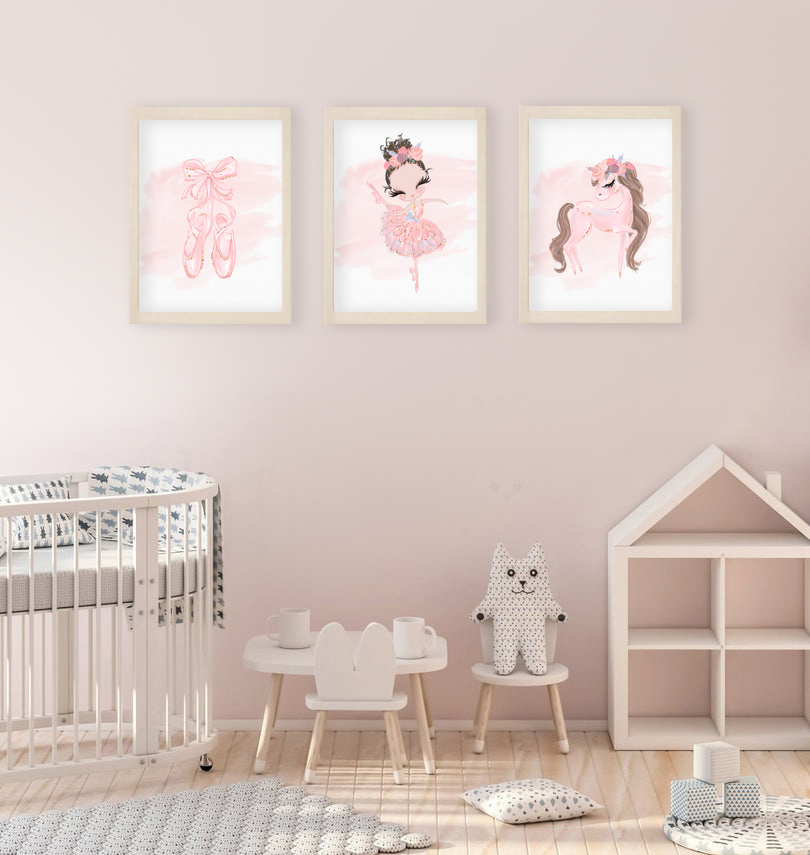 Una bailarina, su fiel caballito y unas delicadas zapatillas crean un mundo de gracia, ternura y fantasía. Un set que transforma el cuarto en un escenario lleno de magia y dulzura.