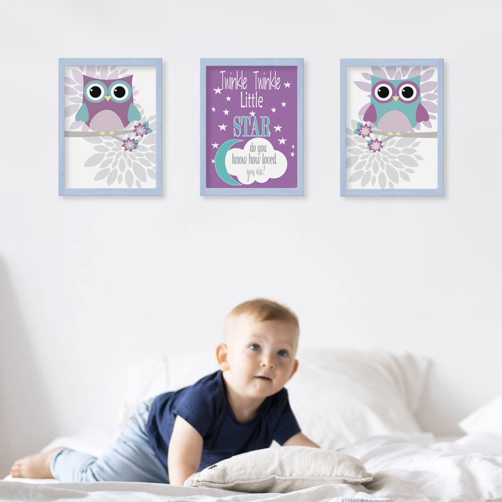 Búhos de ojos brillantes cuidan cada noche con ternura, mientras un mensaje celestial recuerda cuán amado es tu bebé. Este set transforma la habitación en un refugio suave y protector, lleno de cariño desde el primer día.